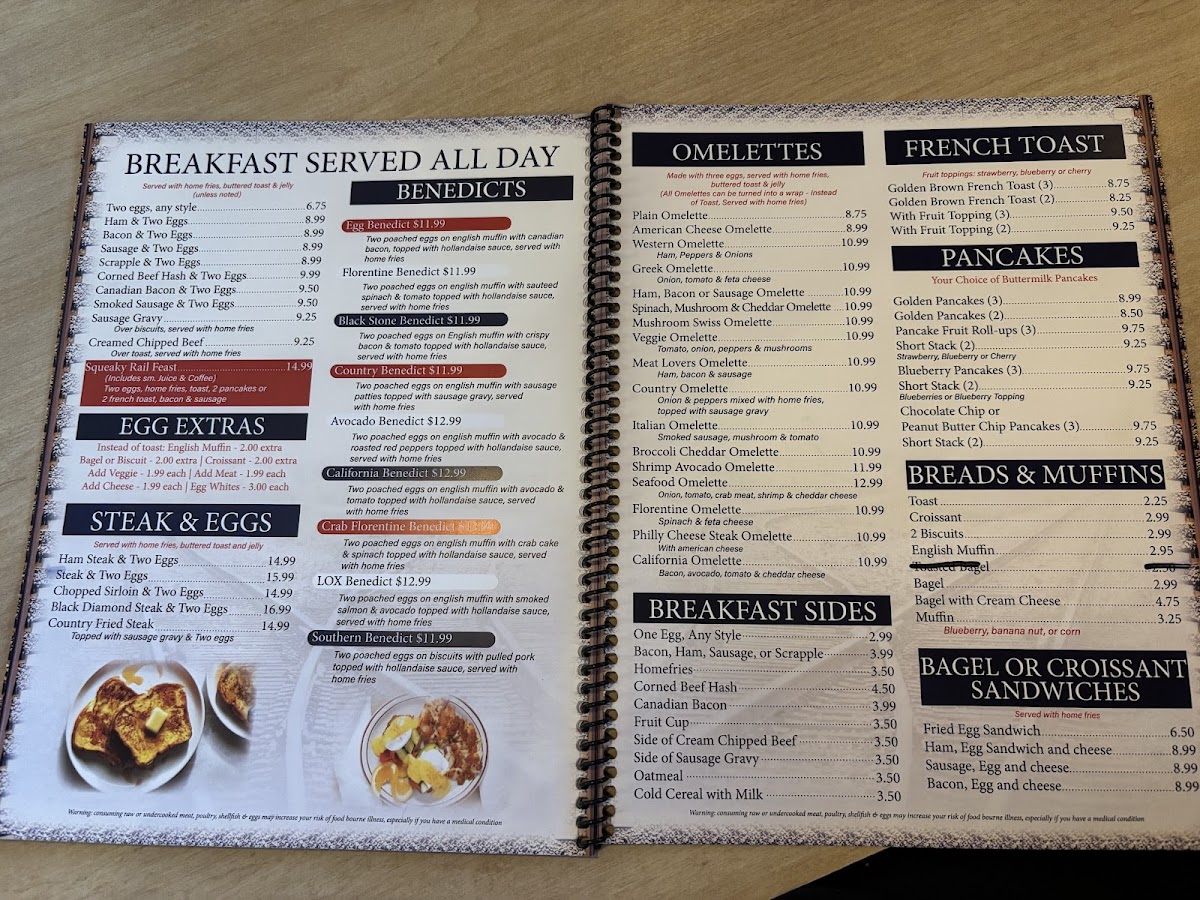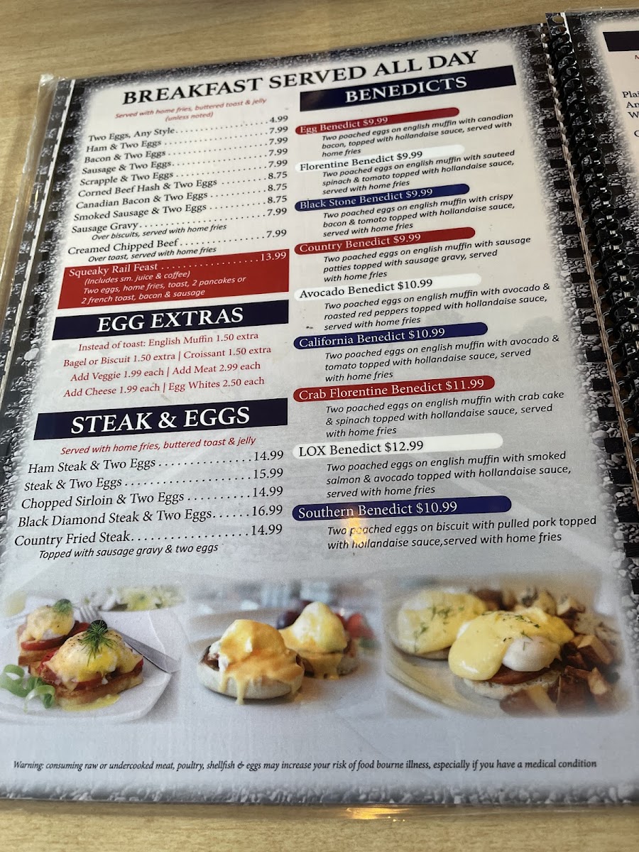 The menu at Squeaky Rail Diner reflects its classic diner roots with a straightforward and comforting selection of dishes. This is the kind of place where hearty breakfasts meet satisfying casual lunches and dinners, making it easy to find something for any part of the day. Whether you’re stopping in for a relaxed morning meal or a filling plate after a long day, the menu offers familiar favorites served with generous portions.